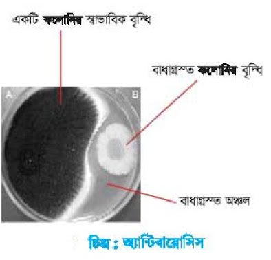 অ্যান্টিবায়োসিস (Antibiosis): একটি জীব কর্তৃক সৃষ্ট জৈব রাসায়নিক পদার্থের কারণে যদি অন্য জীবের বৃদ্ধি ও বিকাশ আংশিক বা সম্পূর্ণরূপে বাধাপ্রাপ্ত হয় অথবা মৃত্যু ঘটে, তখন সেই প্রক্রিয়াকে অ্যান্টিবায়োসিস (Antibiosis) বলে। অণুজীবজগতে এ ধরনের সম্পর্ক বেশি দেখা যায়।