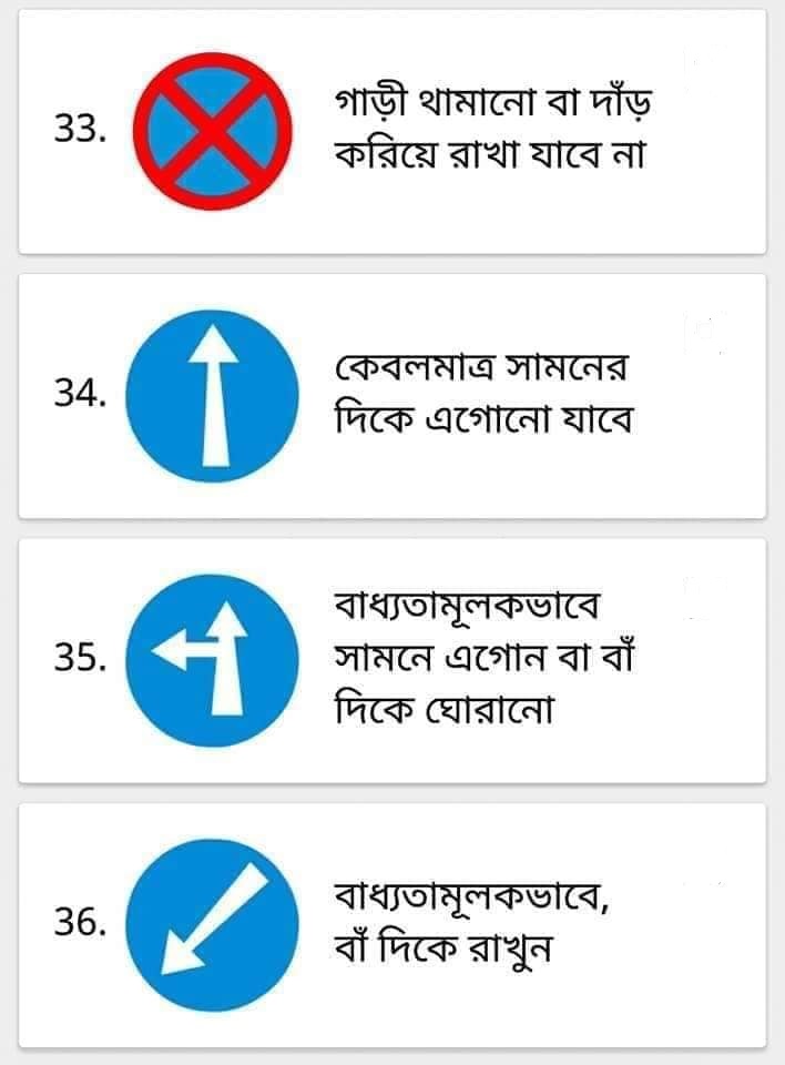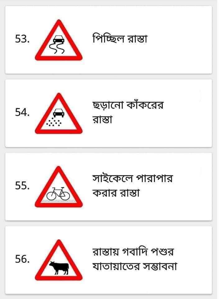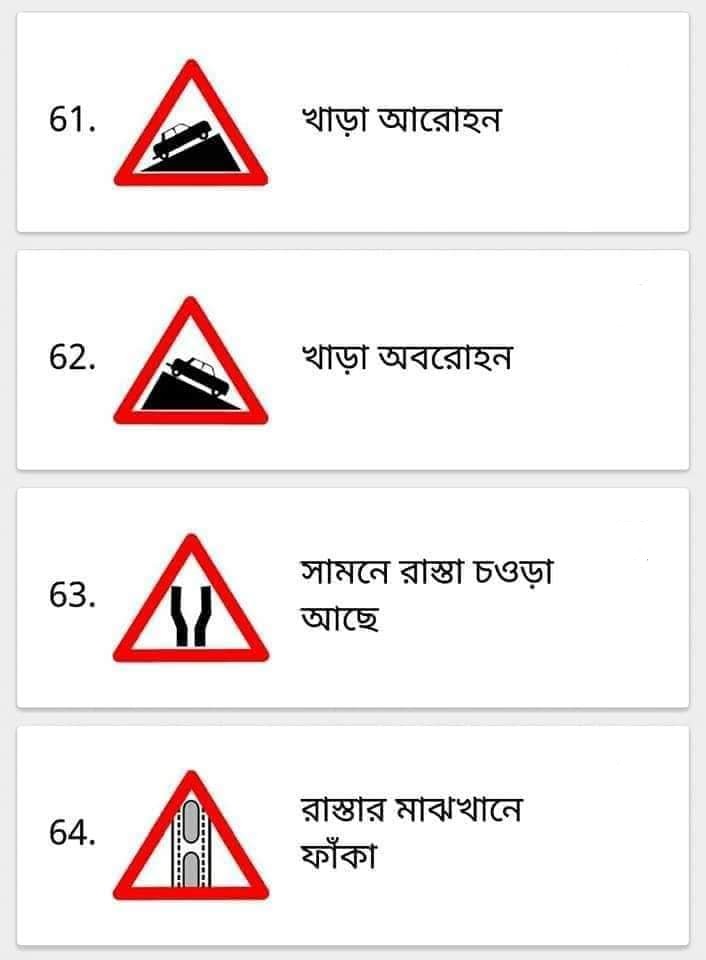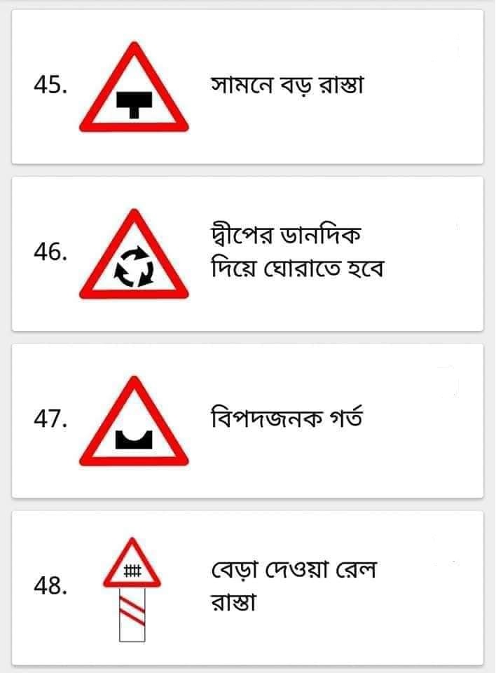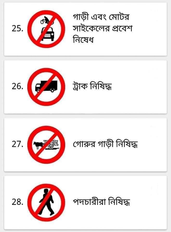ট্রাফিক সাইন কত প্রকার ও কি কি