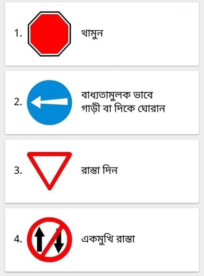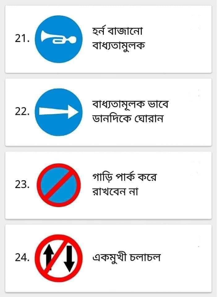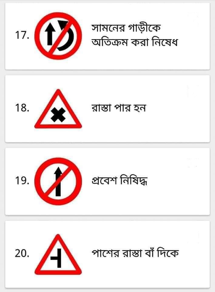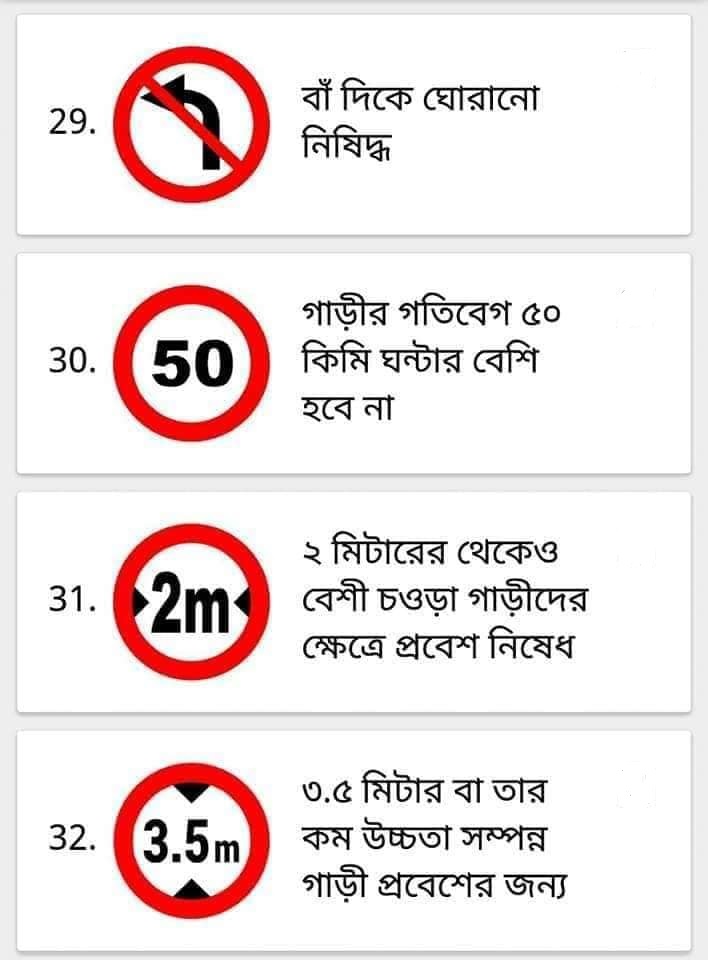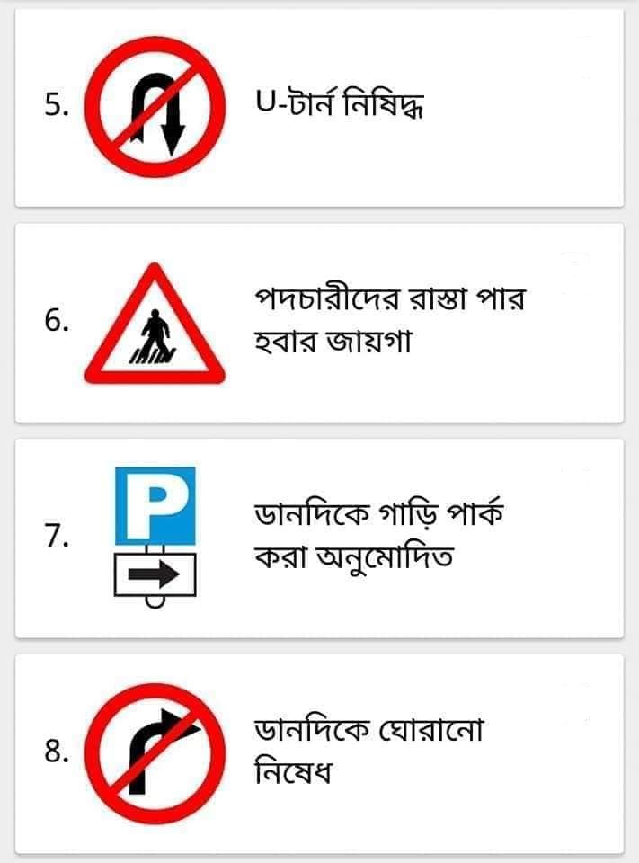 ট্রাফিক সাইন কত প্রকার ও কি কি