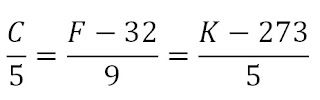 যেকোনো তাপমাত্রার পাঠ সেলসিয়াস, ফারেনহাইট ও কেলভিন স্কেলে যথাক্রমে C, F এবং K হলে একটি প্রাপ্ত তাপমাত্রার মান অন্য স্কেলে কী হবে নিম্নের সমীকরণ ব্যবহার করে সহজে হিসাব করা যায়ঃ