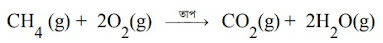 মিথেন গ্যাসকে বায়ুর অক্সিজেনের উপস্থিতিতে পোড়ালে মিথেনের উপাদান মৌল কার্বন পরিবর্তিত হয়ে কার্বন ডাইঅক্সাইড এবং হাইড্রোজেন পরিবর্তিত হয়ে উহার অক্সাইড পানি উৎপন্ন করে।