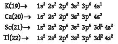 পারমাণবিক সংখ্যা 19 থেকে পরবর্তী মৌলগুলোতে আগে চতুর্থ প্রধান শক্তিস্তরে (N) দুটি ইলেকট্রন পূরণ করে তারপর ইলেকট্রন তৃতীয় প্রধান শক্তিস্তর M এ প্রবেশ করে। এরপরও Cr ও এর ইলেকট্রন বিন্যাসে বিশেষ ব্যতিক্রম লক্ষ করা যাচ্ছে। এই বিষয়টি বোঝার জন্য আমাদের উপশক্তিস্তরের ধারণাটি থাকতে পারে।