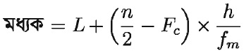 Fc = মধ্যক শ্রেণির পূর্ববর্তী শ্রেণির যোজিত গণসংখ্যা,